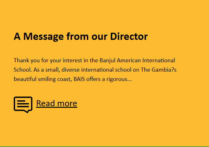 Welcome to the Banjul American International School! Originally known as the Banjul American Embassy School, our school was founded in 1984 by a small group of American families with support from the US Embassy. In December 2016, the Board of Directors voted unanimously to change our name to the Banjul American International School to reflect our globally-minded curriculum and our diverse international community of students and parents.